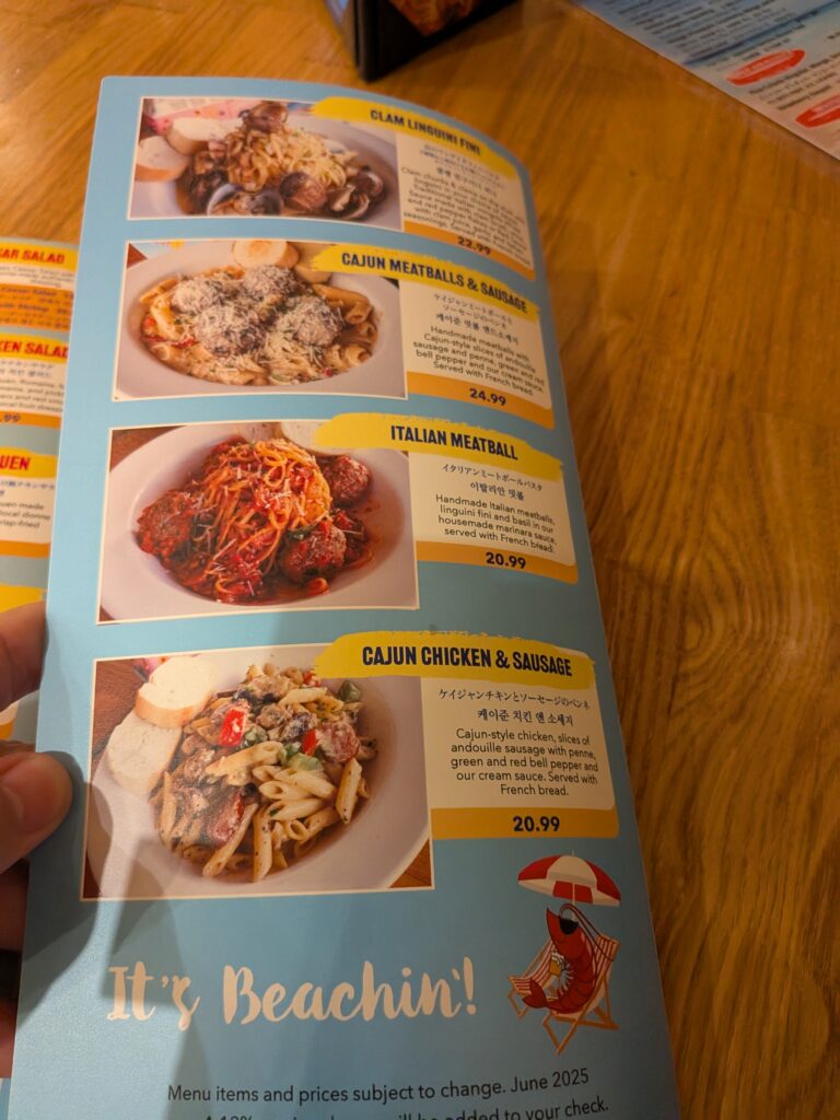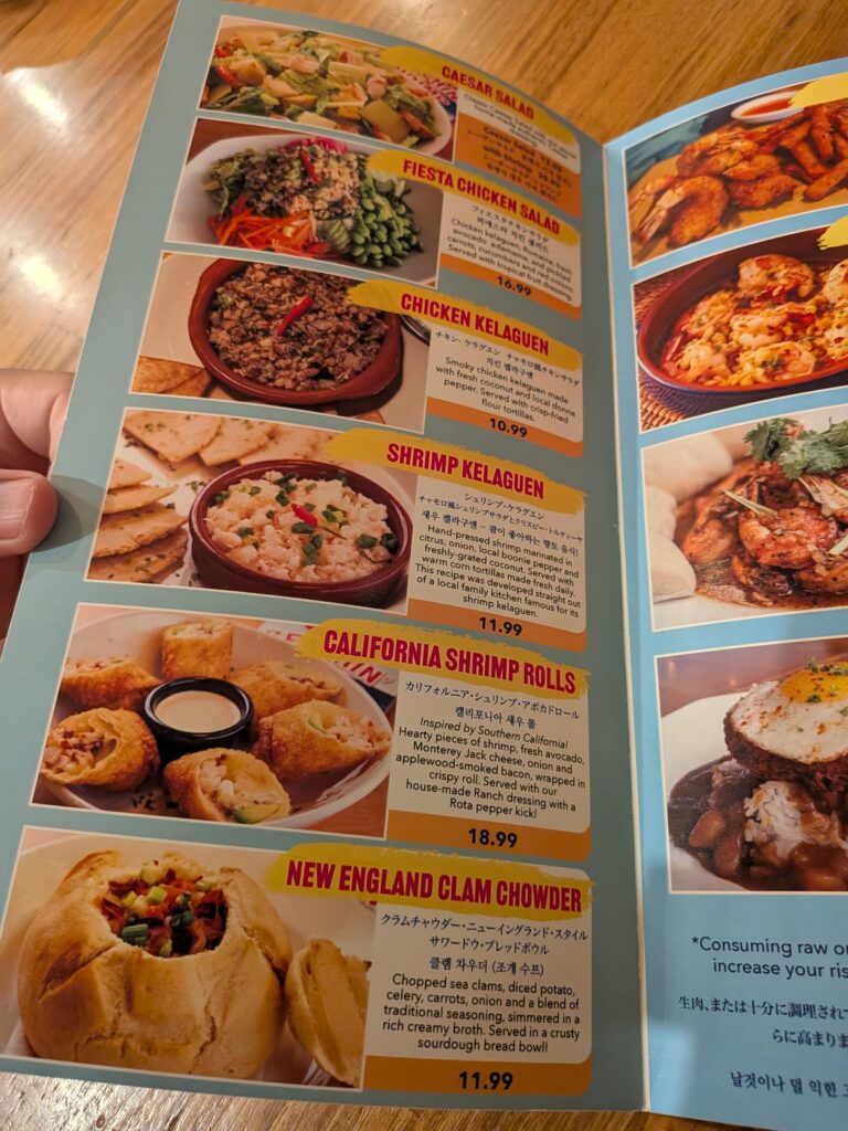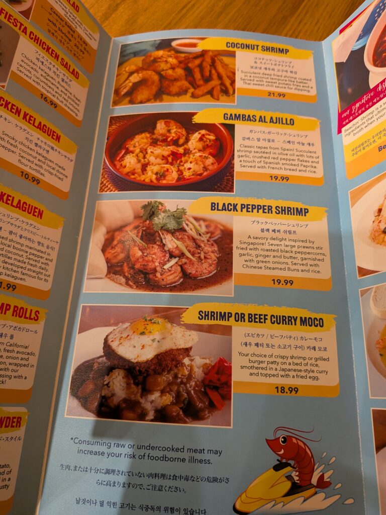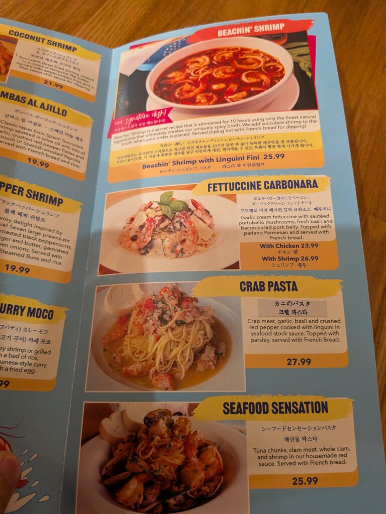 ビーチンシュリンプのメニュー表は日本語併記なので、英語が苦手な筆者夫婦のような旅行者でも安心してオーダーできます。