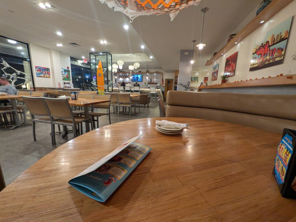 今回訪れたのは PICグアム(パシフィック・アイランド・クラブ)向かいのビーチン・シュリンプ フレーム・ツリー・プラザ店。赤いシャトルバス停留所もすぐ目の前にあり、海沿いやメイン通りからアクセスしやすい立地のため、観光客にも人気が高い店舗です。店内はカジュアルすぎずかしこまりすぎずで入りやすく、家族連れ・カップル・女子旅・ひとり旅まで、どんな客層でも利用しやすい雰囲気でした。