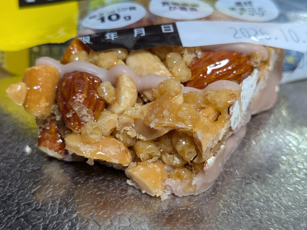 中にもナッツやアーモンドがぎっしり詰まってて食べごたえあってマッスルデリシャスです~!