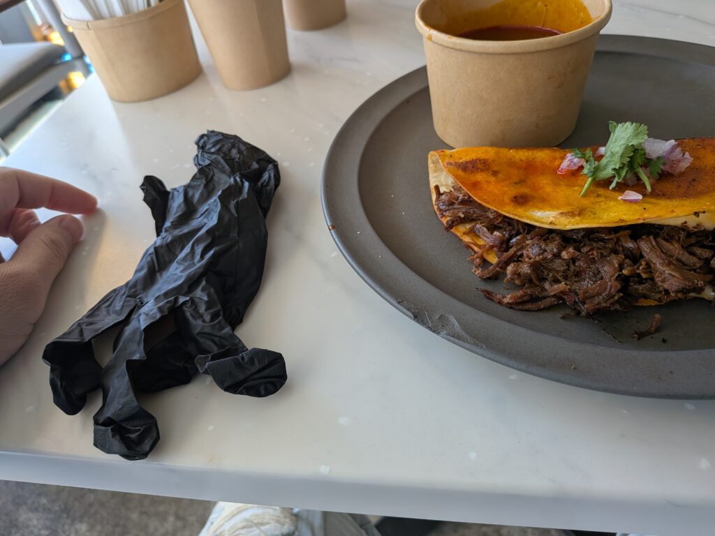 ↑ちなみにタコスはこちらの黒い手袋をして頂きます。