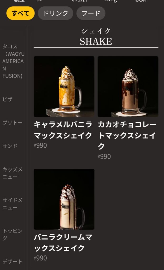 (BEKゴールドエクスペリエンス、サワークリームアボカドシュリンプ) - BEKグリルドビーフステーキ&チーズ