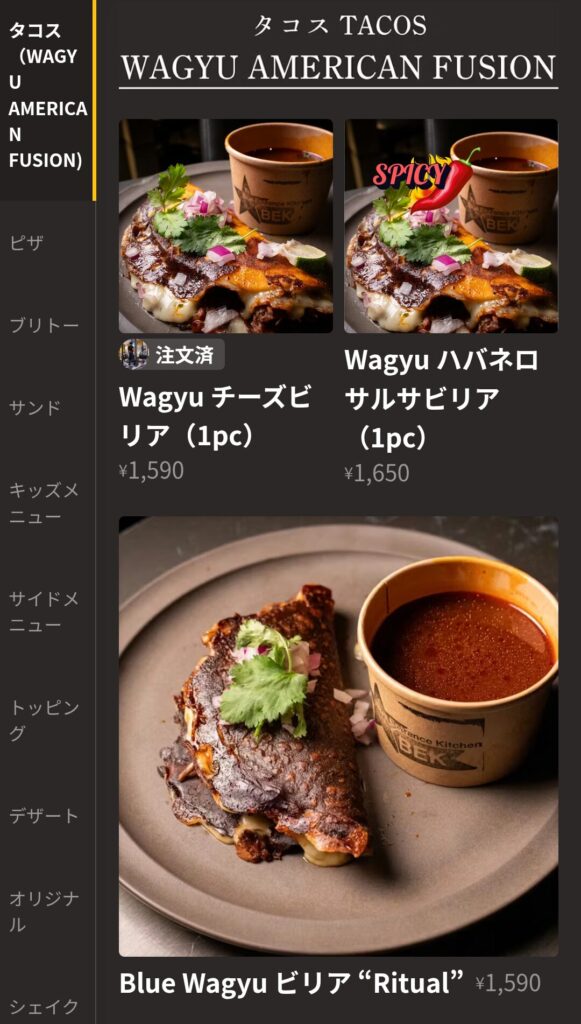 全席完全モバイルオーダーが基本の様で、LINE友達追加をしてメニューをオーダーします。