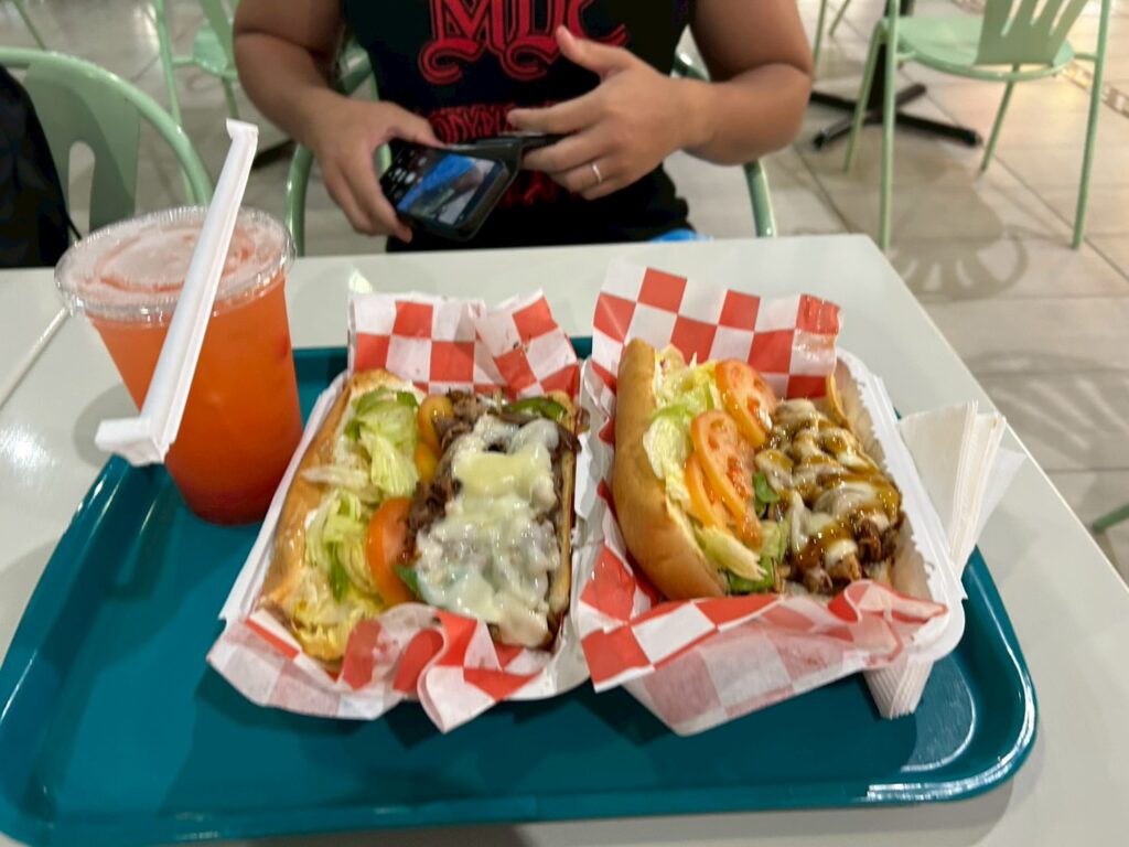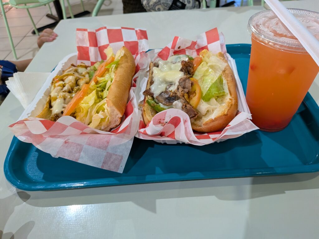たしか定番のフィリーチーズステーキと、テリヤキチキンと、ウォーターメロンジュースだったと記憶しておりますが、間違っていたらスミマセン…。