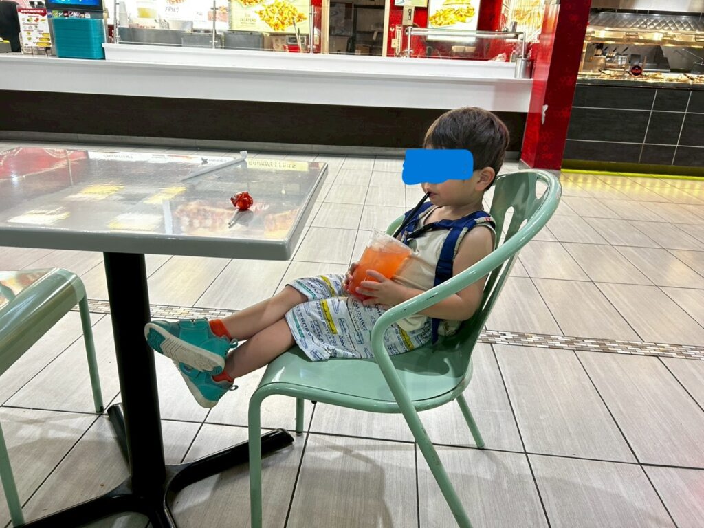 ↑ウォーターメロンジュースも息子が大変気に入った様子で、隣の席で独り占めしようとするほど。