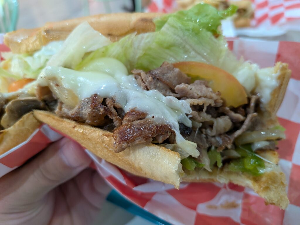 ↑こちらの多分フィリーチーズステーキだと思われるサンドイッチは、牛肉とチーズと野菜がたっぷり入っており、とても美味しかったです。