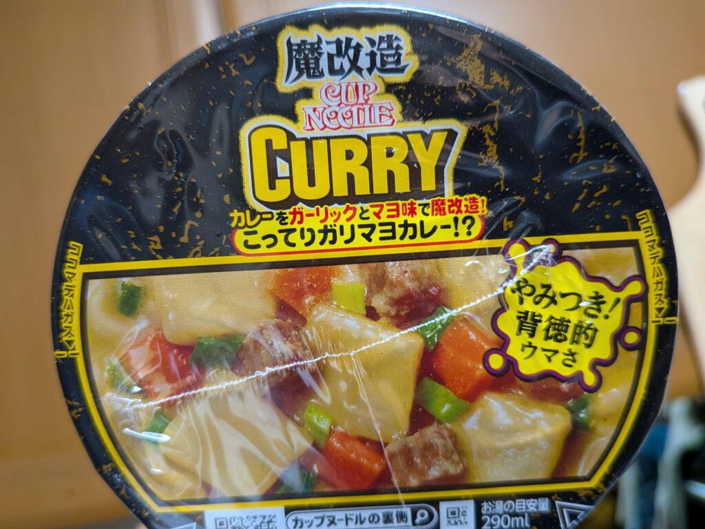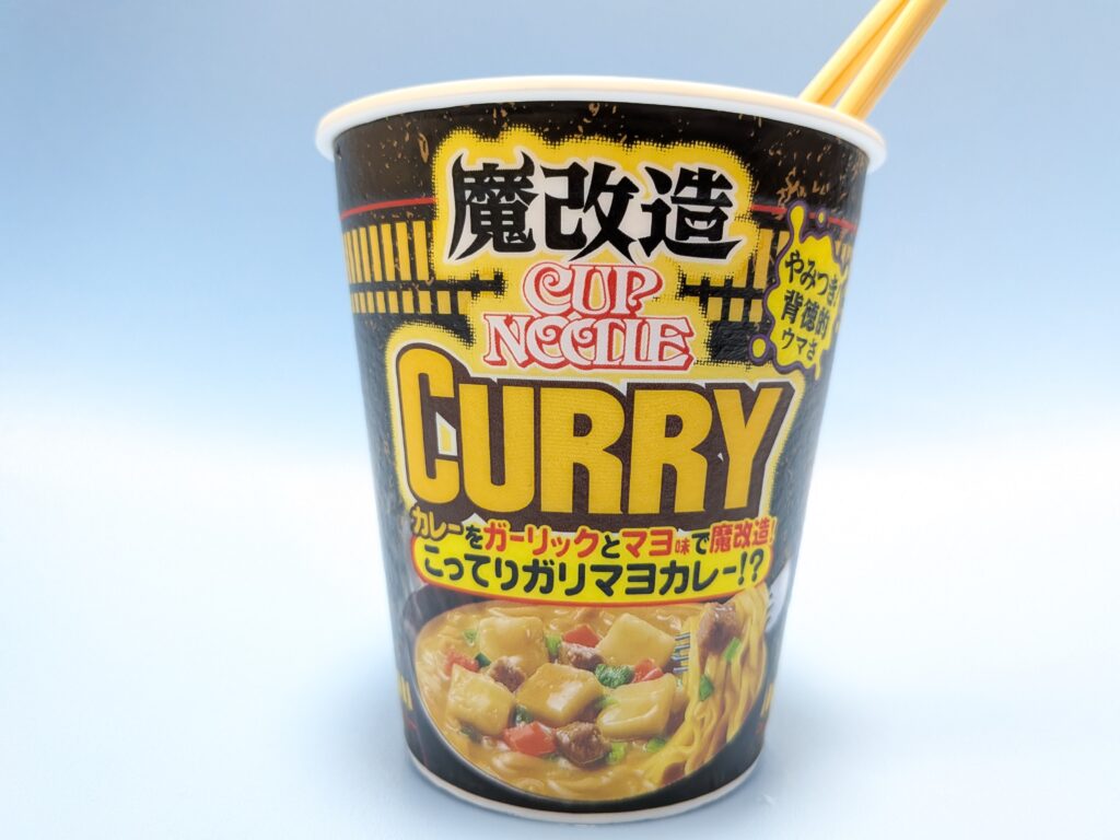 今回レビューするのはこちらのカップヌードル【魔改造カップヌードル カレーをガーリックとマヨ味で魔改造!こってりガリマヨカレー!?】です(笑)