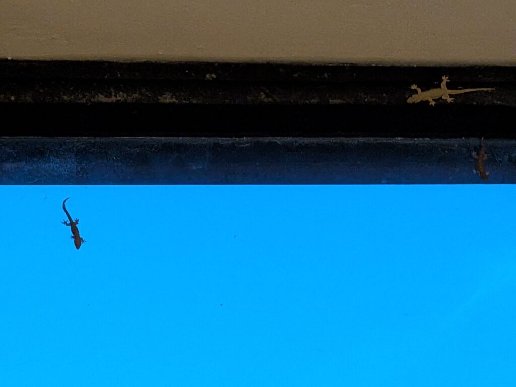 芝生や茂みがあれば基本走り回ってる所を見られますし、ホテルのプール、建物の窓や壁、ほんとどこにでもヤモリがいて、可愛らしい姿に癒される事でしょう。