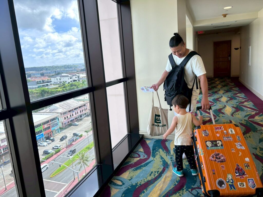 客室前の大きな窓からは空港方面のグアムの景色が眺められました。筆者の部屋は12階だったのでかなり見晴らしも良く、晴れた日にはけっこう遠くの景色まで見れました。