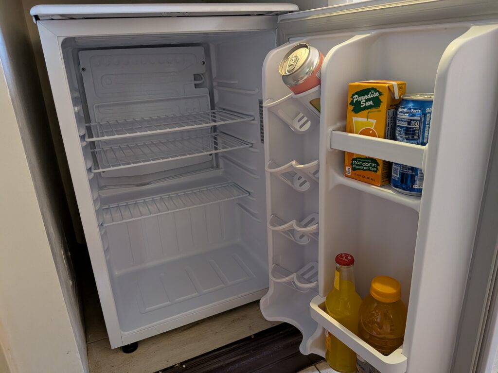 ↑冷蔵庫は飲料がたくさん入るタイプでしたが、冷凍庫はついておりませんでした。
