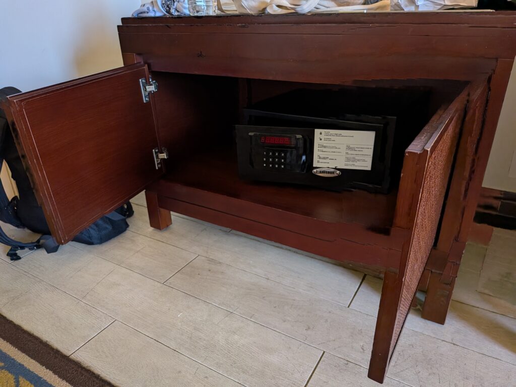 今まで筆者は怪しいモーテルばかりに泊まっていたので、セーフティボックスすら信用できなくて使った事がなかったのですが(マスターキーでやられるため)、PICグアムなら信頼できるので安心して使えますね!