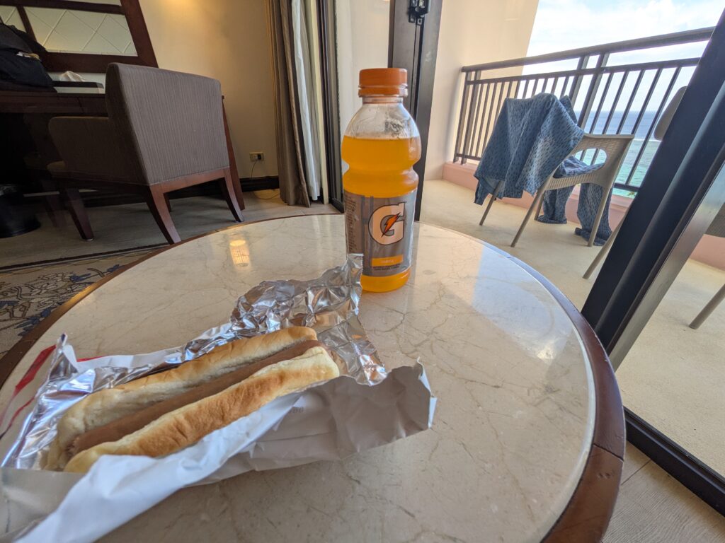 ↑オーシャンビューのバルコニー横にあるこのテーブルで、海を眺めながらABCストアなどで買った軽食を食べるのが非常に良い時間でした。この席で食べるホットドッグもスパムむすびも最高でした。