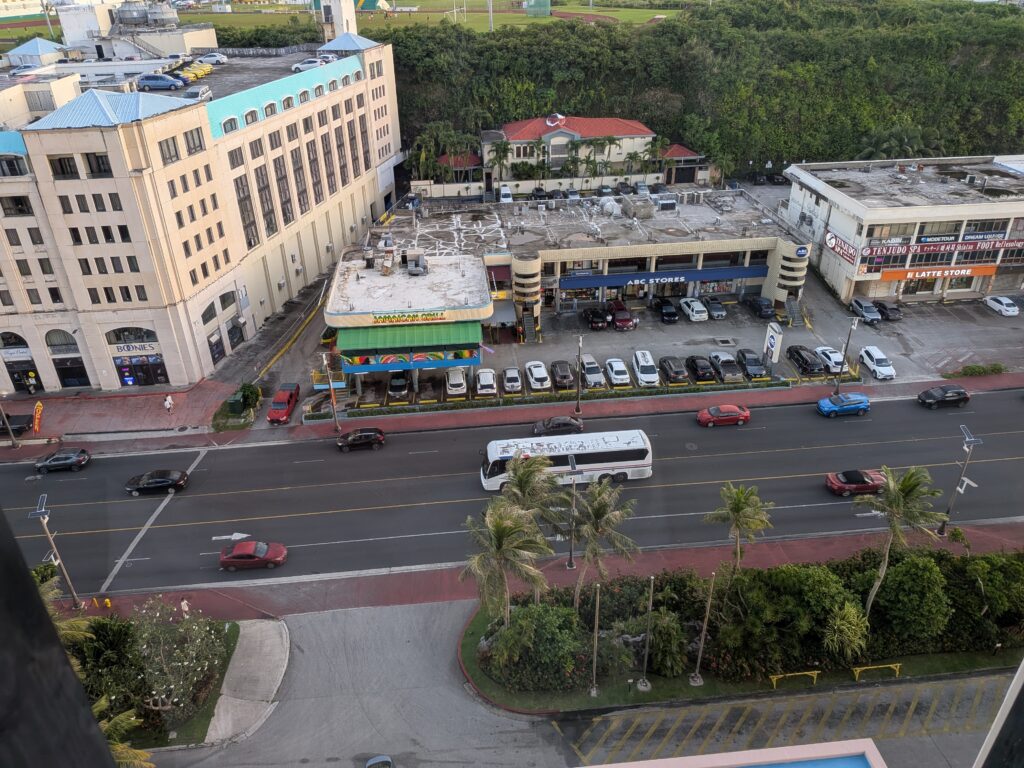 ↑下を見るとホテルの向かいにあるABCストアやその隣にある老舗レストランのジャマイカングリル、さらにはロイヤルオーキッドホテルが見えました。