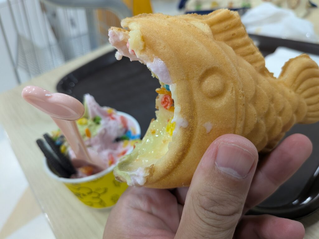 フードコートのレシートはポキ丼以外紛失してしまったのですが、私のカードで支払ったブーングカフェの請求を見ると、たい焼きアイスクリームは日本円で1056円でした。