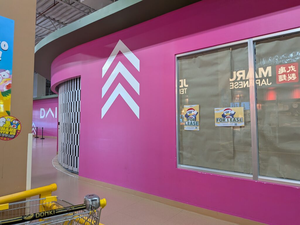 ↑今回筆者は2025年10月27日~11月頭まで滞在したのですが、なんとヴィレッジオブドンキ内にあるダイソーさんが「FOR LEASE(フォーリース)」となっており、閉店していました…。