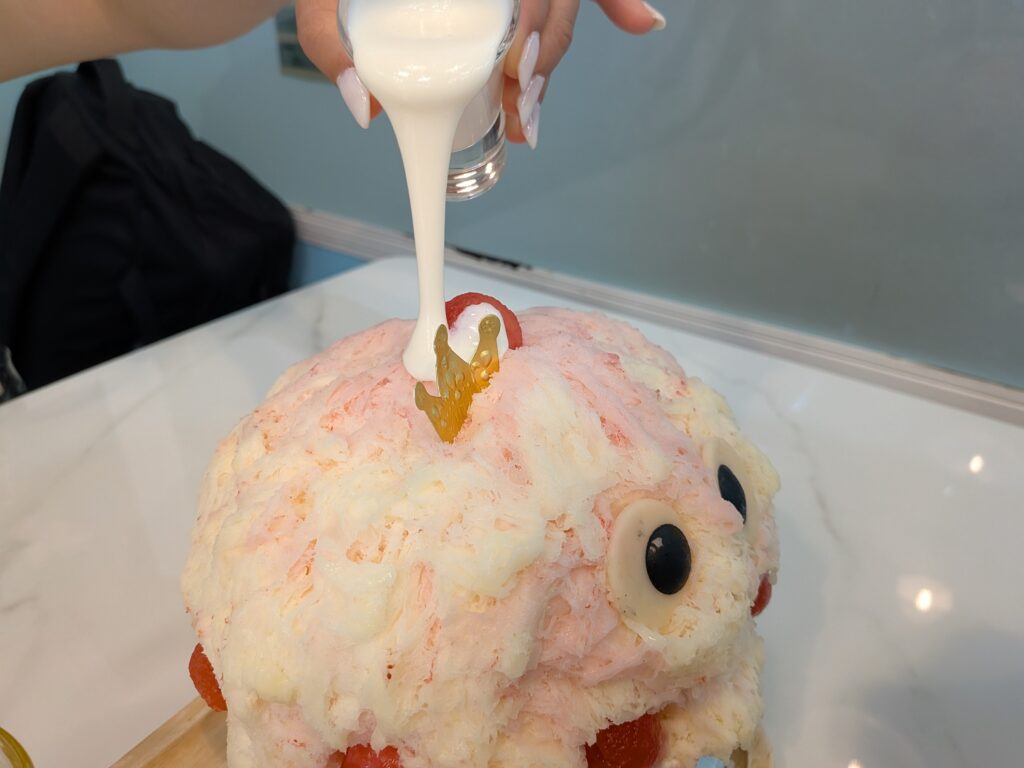 雪花冰はミルクベースの氷を薄く削るため、通常のかき氷とはまったく違う、“雪のようにフワッと溶ける食感” が特徴です。